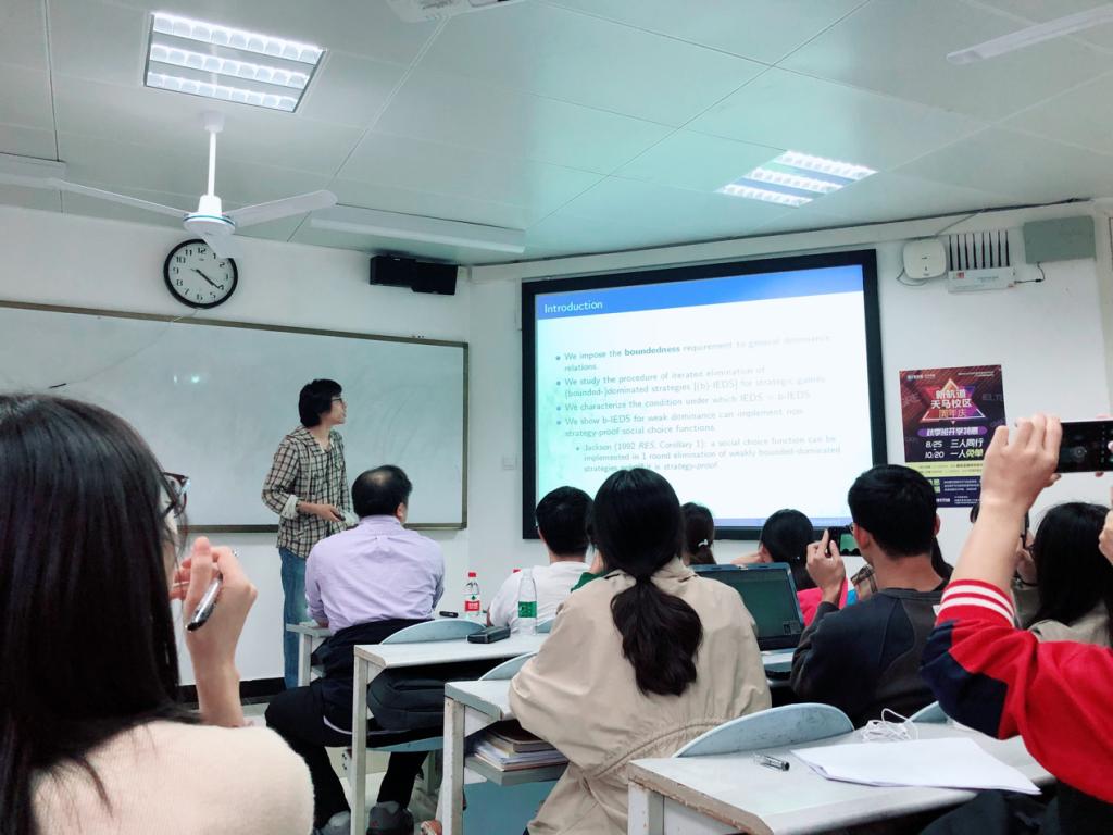 北校区水上教学楼213如期举行。此次研讨会的主题为“Iterated Elimination Using Undominated Dominators”,主讲人为钱学文教授。